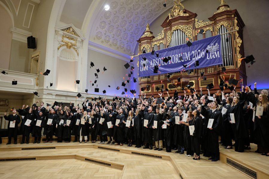 W niedzielę w Auli Uniwersytetu im. Adama Mickiewicza w Poznaniu odbyło się uroczyste absolutorium inżynierskie. Wśród świętujących znaleźli się absolwenci i absolwentki kierunków inżynierskich prowadzonych na Wydział Fizyki i Astronomii UAM, którzy zakończyli ważny etap swojej akademickiej drogi.