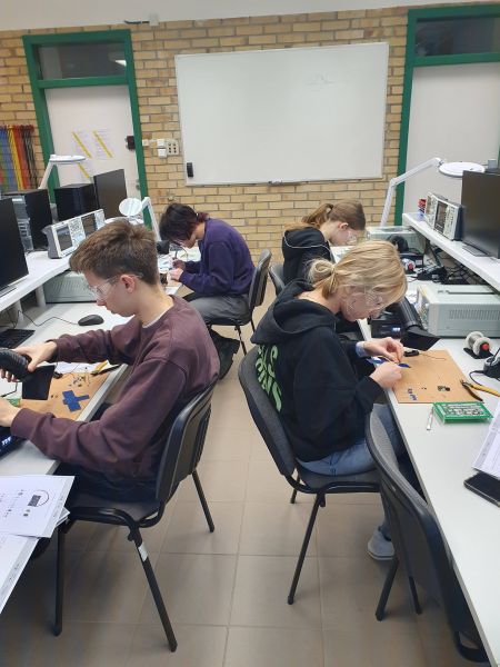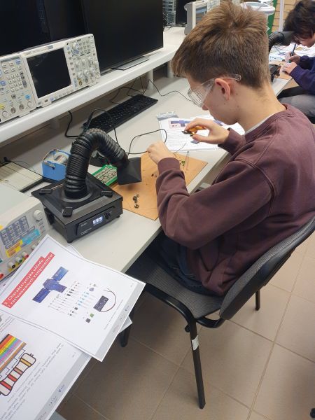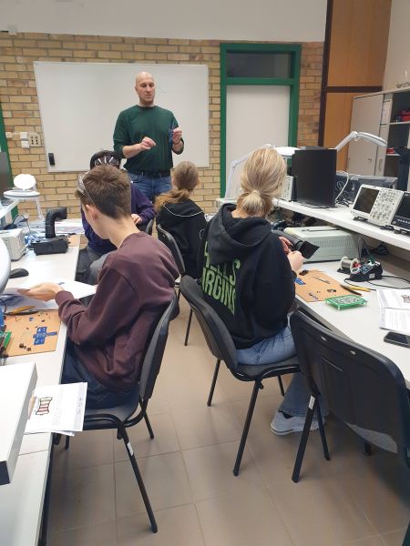 Warsztaty odbywają się w Laboratorium Fizycznym i Elektroniki Cyfrowej Wydziału i mają wyraźnie praktyczny charakter. Młodzież pracuje z profesjonalnym sprzętem, uczy się czytania schematów elektronicznych, zasad bezpiecznej pracy, a także samodzielnie montuje i testuje własne układy. To nie tylko nauka teorii, lecz przede wszystkim doświadczenie inżynierskiej pracy „od podstaw” – od projektu po uruchomienie działającego urządzenia.