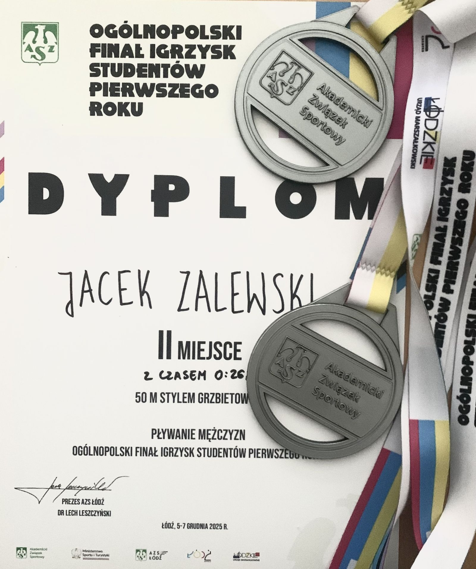 Sukcesy pływackie naszego studenta Jacka Zalewskiego