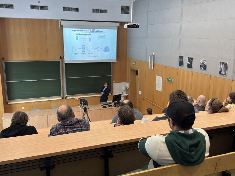 Podczas wystąpienia prelegent zaprezentował badania nad wykorzystaniem samoorganizujących się peptydów w regulacji procesów zapalnych oraz ich potencjalne zastosowania w medycynie regeneracyjnej, także w warunkach mikrograwitacji.